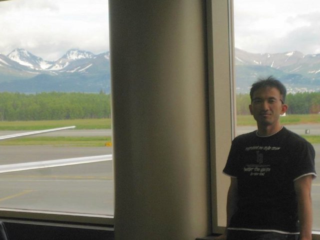 空港から見た山々と.