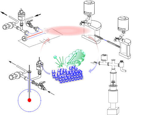 通常の環境では熱流体は壁面で固体表面と同じ温度,速度を持つとして解析を行うことができます.しかし高クヌッセン数環境では一致せずにズレが生じることが分かっています.ただ,そのズレの大きさは流体分子と固体表面の相互作用から決まるものであり,一般的には分かりません.そこで,熱輸送や流動の特徴を利用しながら,このズレと固体表面の特徴の関係性を解明することを目指し,熱と流れに関する計測の両方を世界的に見ても珍しく実施しています.